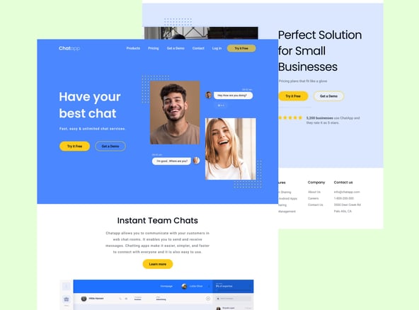 This is a homepage design and build for a concept project – a chat application. I designed the page first, then built a responsive web page using Webflow.